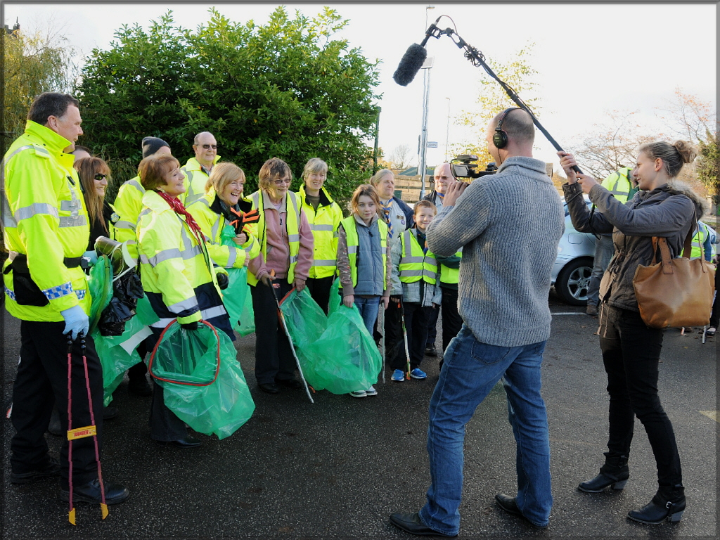 Filming our Chairperson, Janet Chisholm, at home and around town kept her busy all day. In the afternoon we were filmed on a regular litter pick and then some of the Committee were interviewed individually. The litter pick resulted in 16 full bags of litter and the town was left sparkling for the Remembrance Day Parade and Service which took place the following day.